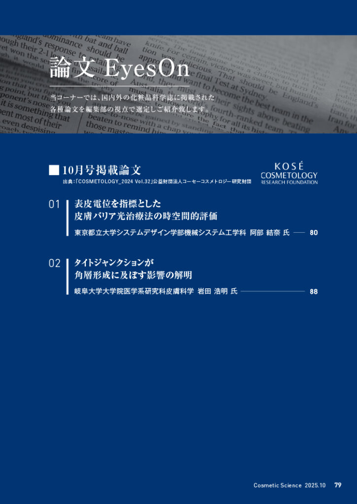 東京都立産業技術研究センター 機能化学材料技術部バイオ技術グループ 爲廣響子/干場隆志 - コラム BEAUTY SCIENCE EYE(コスメの新たな技術をユニークな視点で読み解く)