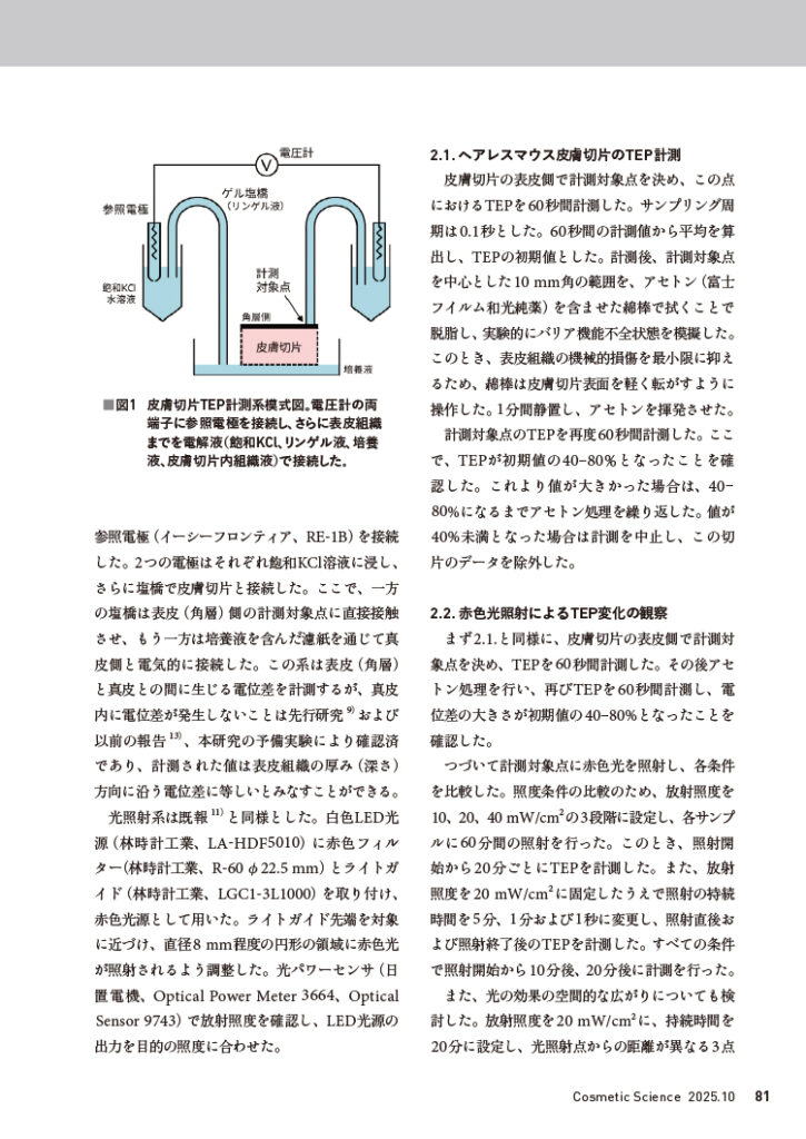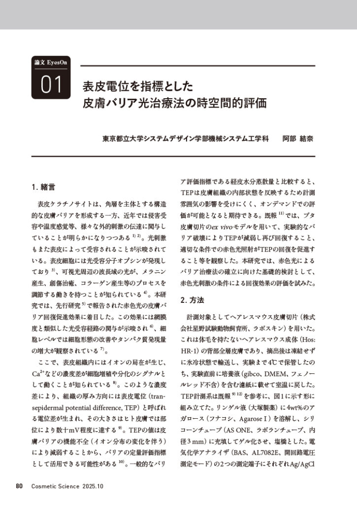 - 表皮電位を指標とした皮膚バリア光治療法の時空間的評価