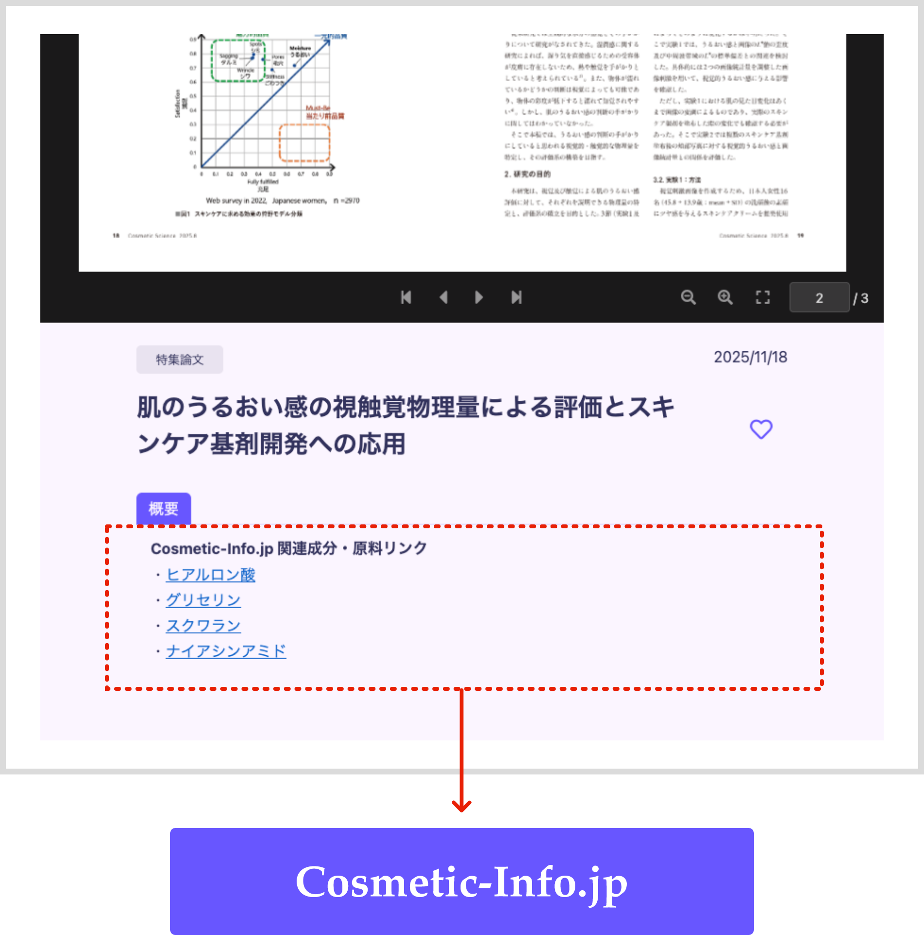 論文リンクから、Cosmetic Scienceの個別論文ページへアクセスできます。