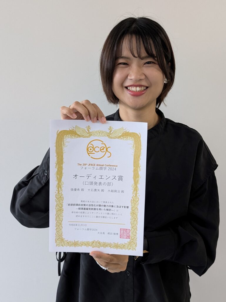 ポーラ・オルビスグループの研究・開発・生産を担うポーラ化成工業株式会社(本社:神奈川県横浜市、社長:片桐崇行)の張優希研究員が、2024年11月2~3日に開催された第29回日本顔学会大会(補足資料1)においてオーディエンス賞を受賞しました。ポーラ化成工業の本学会での受賞は、昨年に続き2年連続です。