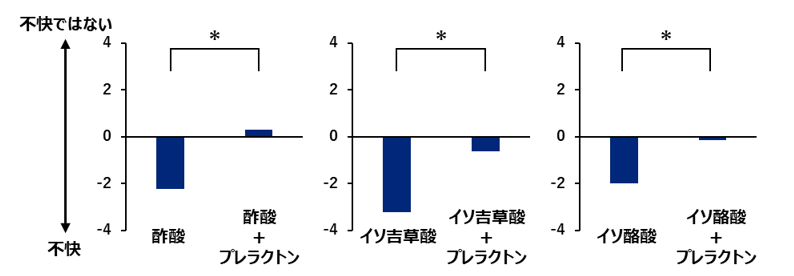 結果3 プレラクトンによって悪臭成分の不快度が減少することを官能評価にて確認