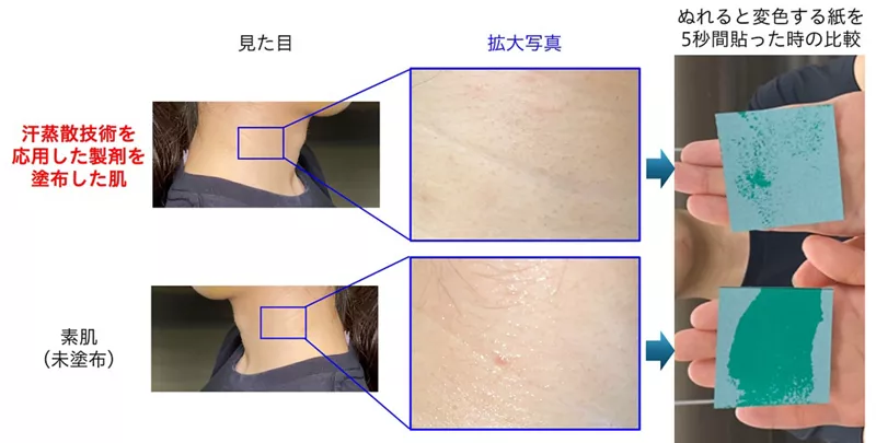 花王株式会社(社長・長谷部佳宏)スキンケア研究所は、汗を肌上ですばやく広げることで、速く乾かす技術(汗蒸散技術)を開発しました。これにより、肌上で蒸散することで熱を奪って体を冷ますという汗本来の機能を活かしつつ、暑熱環境下でも不快なベタつきを軽減し肌を快適に保つことが期待できます。