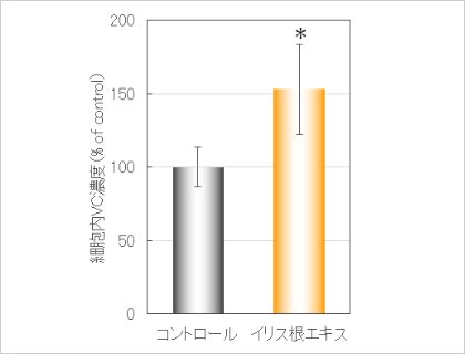 結果1:イリス根エキスが細胞内のビタミンC量を高めることを確認