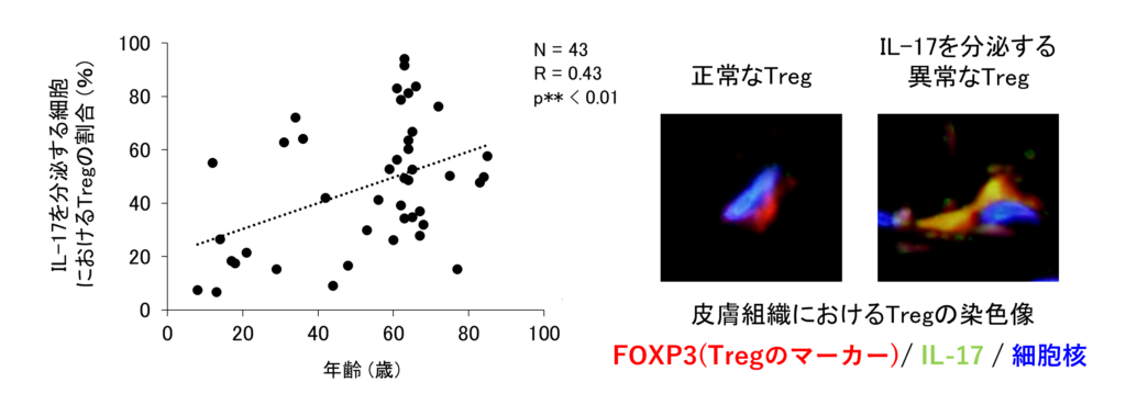 これらの知見から、異常化したTregによるIL-17分泌を抑制し、マクロファージの老化細胞除去機能を正常化できれば、新たな皮膚老化の予防につながると期待されます。