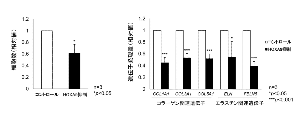 2-3. HOXA9遺伝子は真皮線維芽細胞の増殖やコラーゲン、エラスチンの産生を促進する