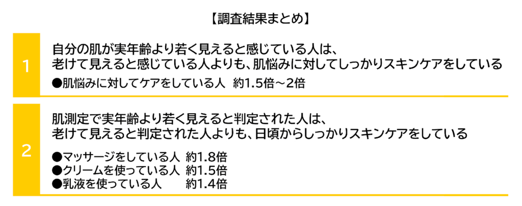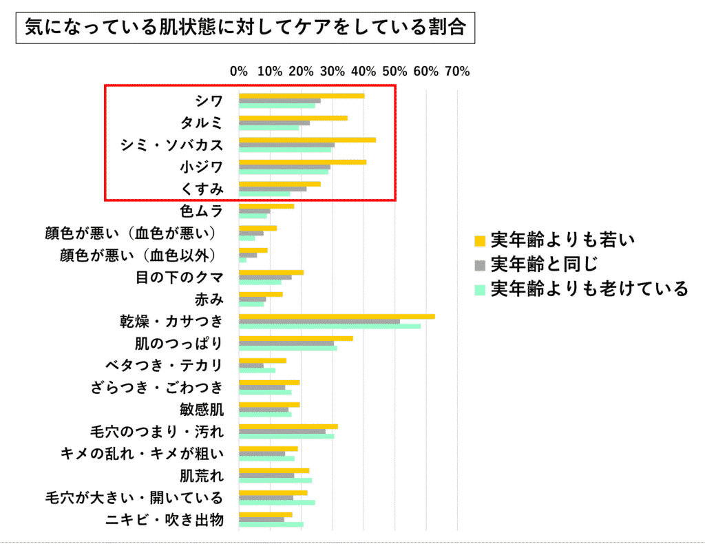 肌年齢が「若く見える」と回答した人は肌悩みに対しケアをしている