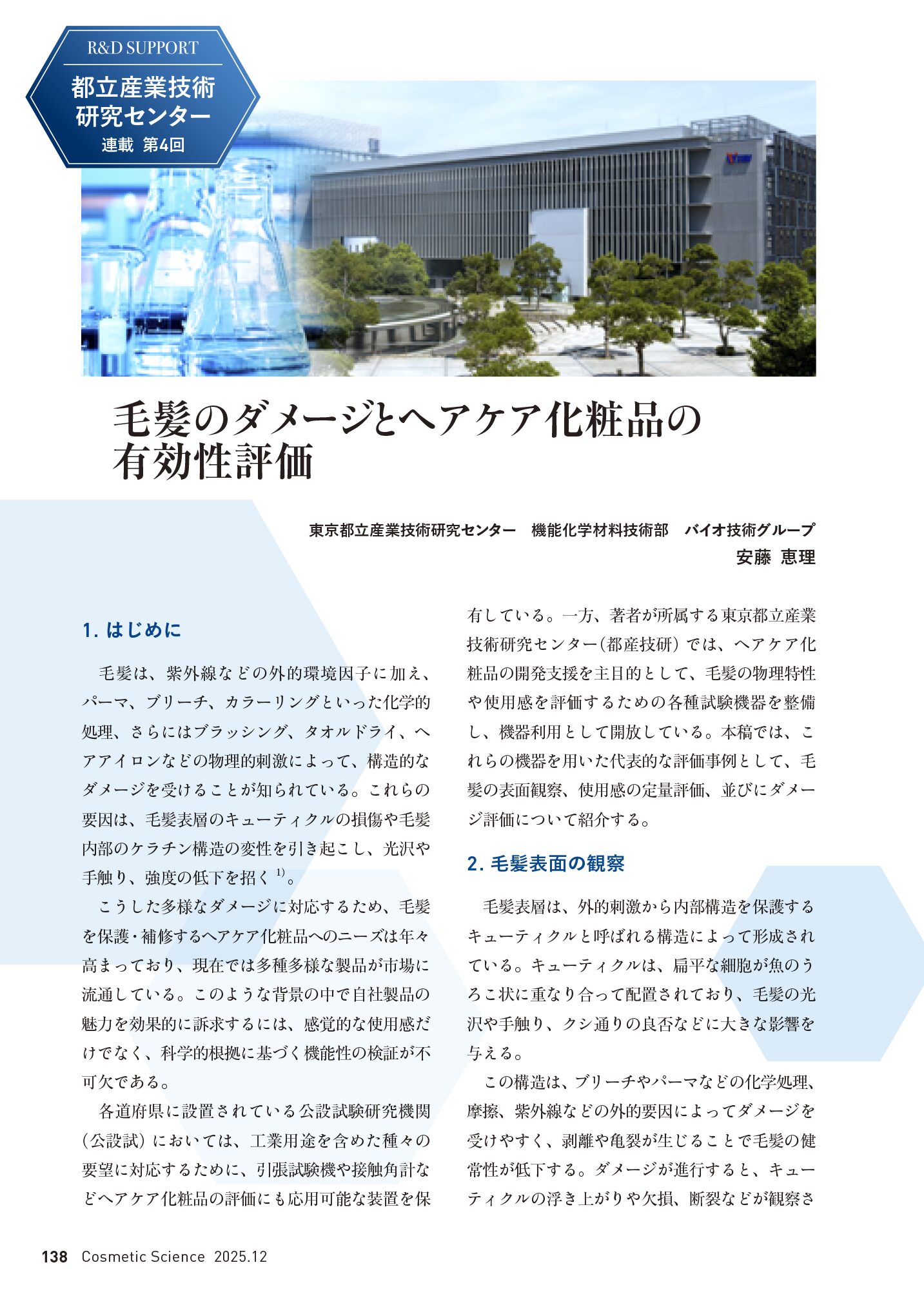ホーム R&D Updated information Cosmetic Science 最新号・バックナンバー 理念・編集方針 今後のビジョン 編集体制・事務局 各号特集論文 論文 EyesOn 各号連載企画 産学連携レポート 原料ガイド お知らせ 購読・広告お申し込み 購読のお申し込み 広告出稿のお申し込み 人材募集・お問い合わせ 人材募集フォーム お問い合わせフォーム よくあるご質問
