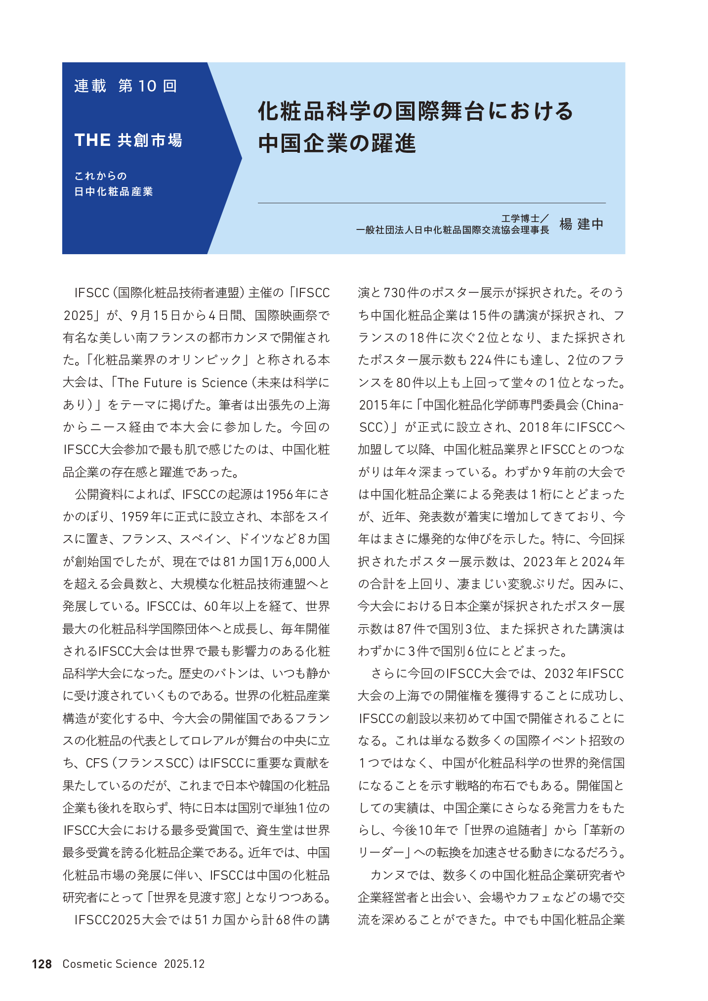 化粧品業界に入って30年、日中間で行き来しながらビジネスを実践する筆者は、日中化粧品の現状について、自身で見て、聞いて、感じたことを読者に紹介していく。