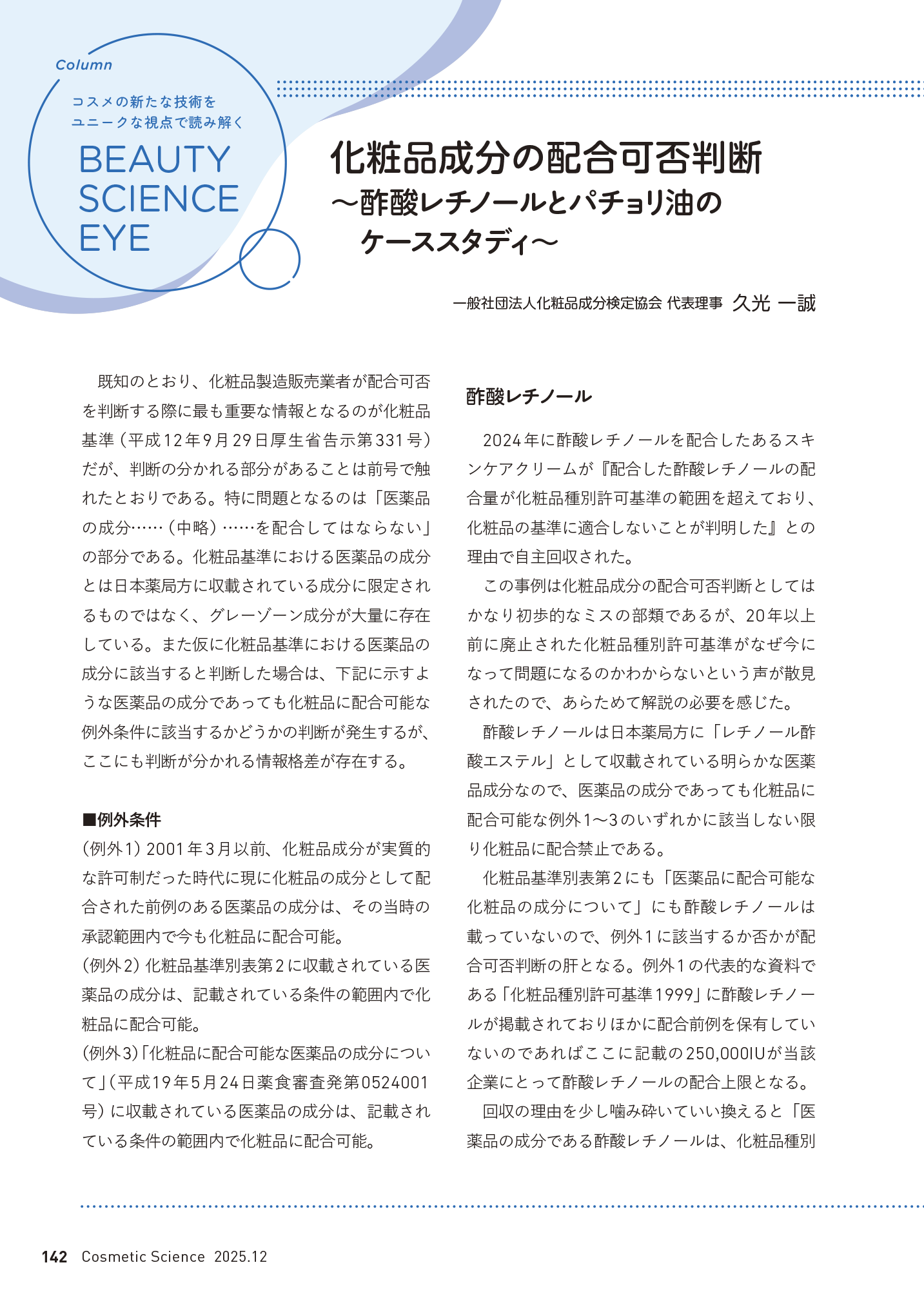 ~ 酢酸レチノールとパチョリ油のケーススタディ~